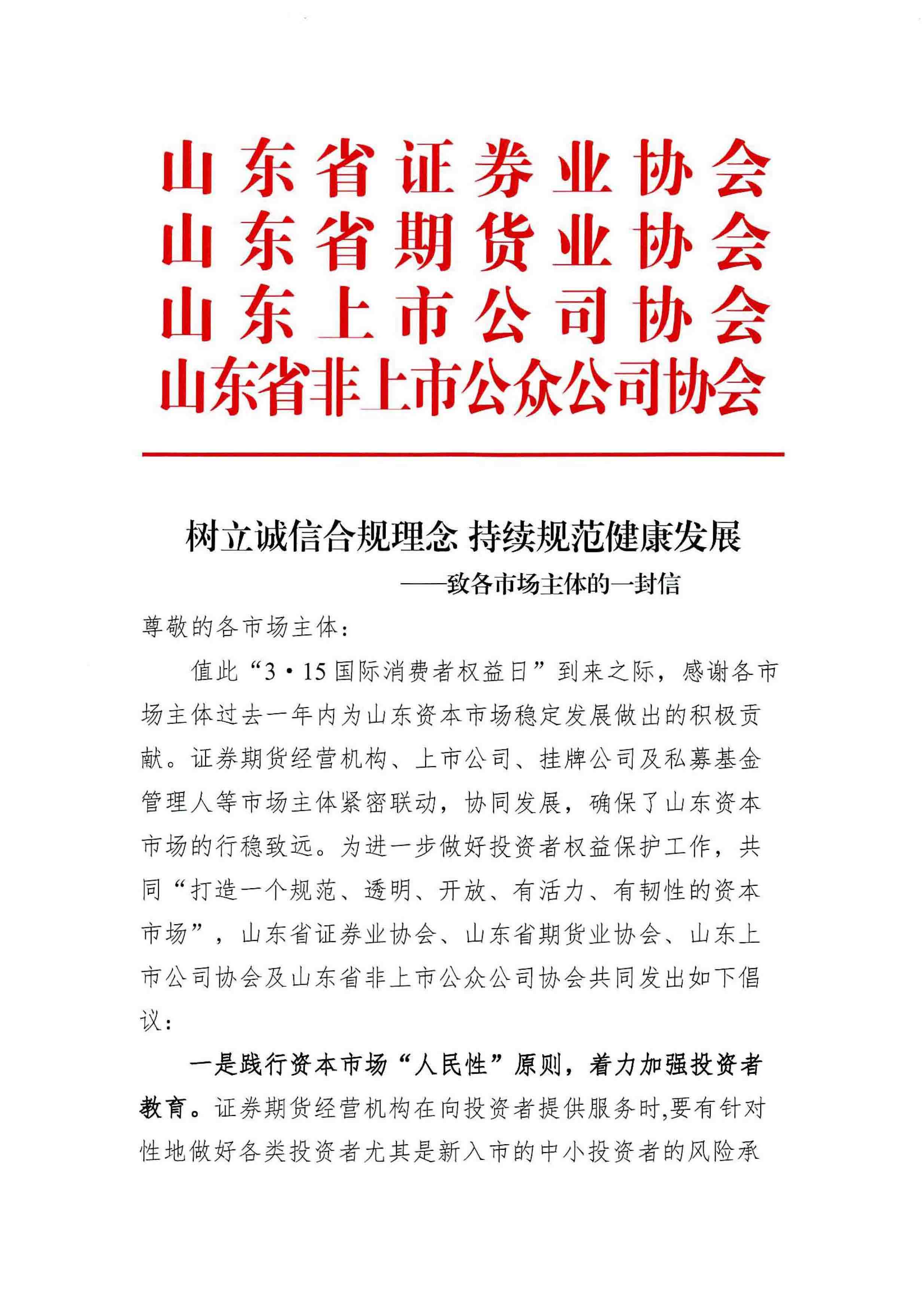 樹(shù)立誠(chéng)信合規(guī)理念 持續(xù)規(guī)范健康發(fā)展—致各市場(chǎng)主體的一封信
